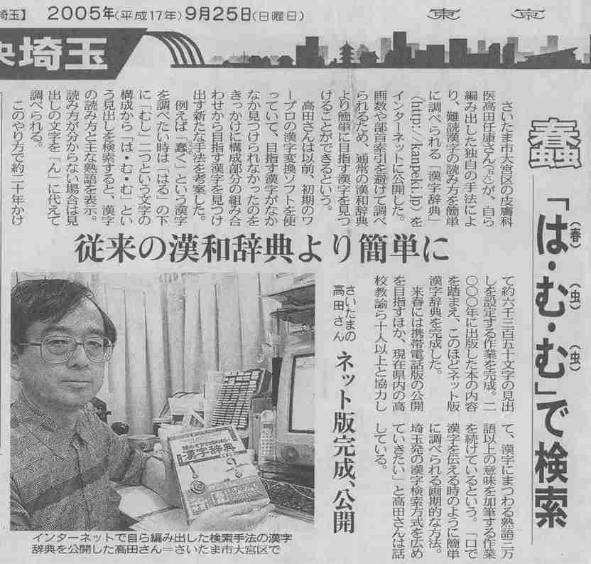 超漢字検索難読漢字辞典が東京新聞埼玉版 で紹介されました。
