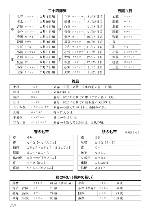 干支二十四節気単位国名都市名数え方現代年表人名漢字変体仮名など